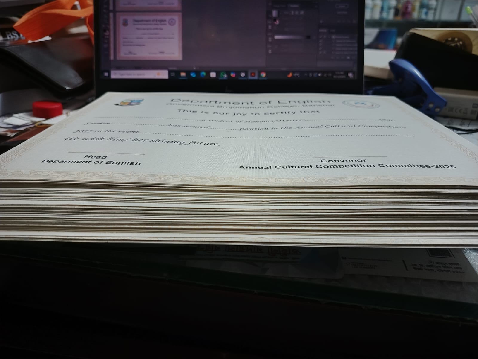 প্রতিষ্ঠানের পুরস্কার, ট্রেনিং, প্রতিযোগিতা বা বিবিধ প্রোগ্রামের জন্য সুন্দর ও সাশ্রয়ী সার্টিফিকেট — মাত্র ৩৫ টাকা/পিস।