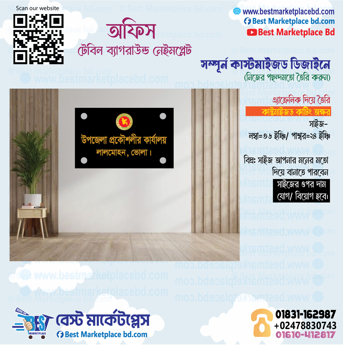 যেকোন প্রতিষ্ঠানের অফিস টেবিলে পিছনে বা দরজার পাশে দেয়ালে রুম নেইম প্লেটের জন্য এটি অত্যন্ত গুরুত্বপূর্ন একটি প্রডাক্ট। যা আপনার অফিসকে স্মার্ট গেটাপে নিয়ে আসবে।